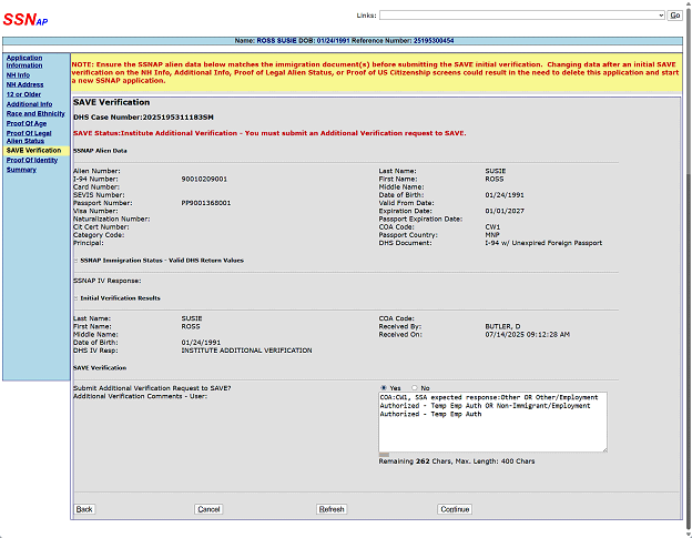 · SSNAP has been updated to allow the response code “026” (Other) “Successfully Verified” - Not employment authorized, which was previously not an allowed response for both the 2nd and 3rd level responses.