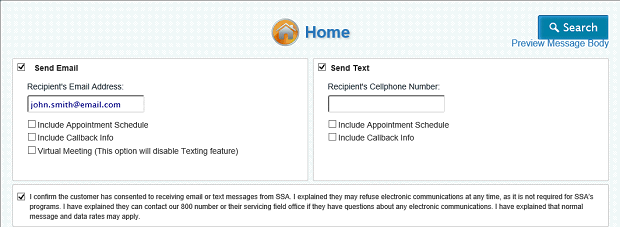 Confirm with the representative payee (1) his or her correct email address or cell phone number, and (2) that he or she consents to receiving email or text communication from the Social Security Administration.