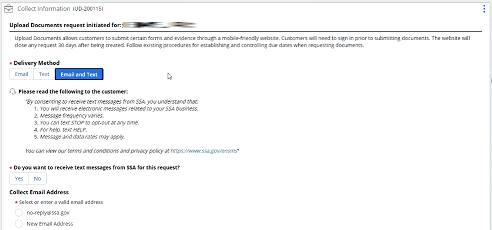 Step 2: The technician records the customer's consent to receive text messages in TED by selecting the “Yes” button by the following message: “Do you want to receive text messages from SSA for this request?”